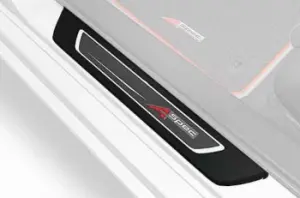 Serving a twofold purpose, the Illuminated Door Sill Trim both enhances the interiors ambience while protecting the lower door sill from scuff marks. Serving a twofold purpose, the Illuminated Door Sill Trim both enhances the interior’s ambience and protects the lower door sill from scuff marks. White LED lights illuminate the A-Spec logo on all four doors when opened. Made of 0.5-mm-thick stainless steel and injection-molded plastic for durability.